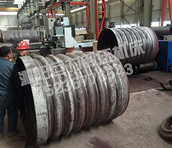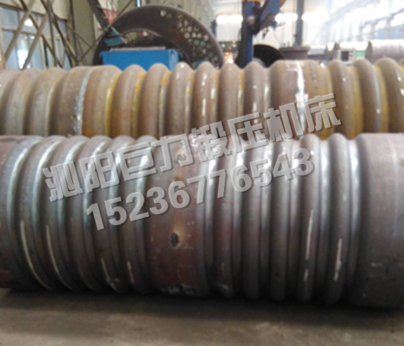 W12NC-系列微控波紋四輥卷板機,既可作為普通四輥卷板機使用,能將金屬板料一次上料,不需調頭即可完成板料端部預彎和卷制成形,剩余直邊小,是卷制圓形、弧形工件的理想設備。該機上下工作輥均為主驅動輥,由液壓馬達、行星減速機驅動,側輥為被動輥,下輥、側輥升降為液壓傳動,升降位移均由計算機控制,自動調平,屏幕數(shù)字顯示,同步精度±0.15mm。翻轉軸承體的翻轉和復位,由液壓驅動,上輥尾部裝有平衡機構,可以方便卸出卷制后的工件及筒體。設有移動式獨立操作臺,方便工人使用,設有安全聯(lián)鎖裝置,該機功能全,精度高,操作方便,是石油、化工、鍋爐、造船、水電、金屬結構等行業(yè)卷制圓形、弧形和錐形工件為理想的機型。該機除了作為普通四輥卷板機使用外,在上下工作輥上加裝模具,還能壓制波紋筒形工件,每組模具采用上下兩片模具組合而成,方便拆裝,而且,各組模具可以自由組合成不同長度,以適應不同寬度的波紋筒壓制。為了在一臺機器上同時滿足內波紋筒和外波紋筒的壓制,上下工作輥設計為同一直徑,針對不同的波形,上下輥上的凸模和凹??梢曰Q,地降低了產品成本,方便用戶使用。在機器一側的聯(lián)接梁上布置有二個擋料裝置,以確保壓制波紋筒時,工件不會跑偏,保證波紋筒的精度符合要求。擋料裝置左右各一個,沿軸向可以通過油缸作用移動一定的距離,以適應不同寬度的波紋筒都能準確定位。