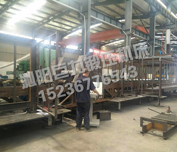 機械輔助部分包括:液壓橫向送料平臺(送進(jìn)鋼板)、電磁吸盤上料部分、進(jìn)料輥道部分、左右托料輥道部分、板料對正部分、出料輥道部分、電磁吸盤下料部分、液壓橫向送料平臺(送出成品)。